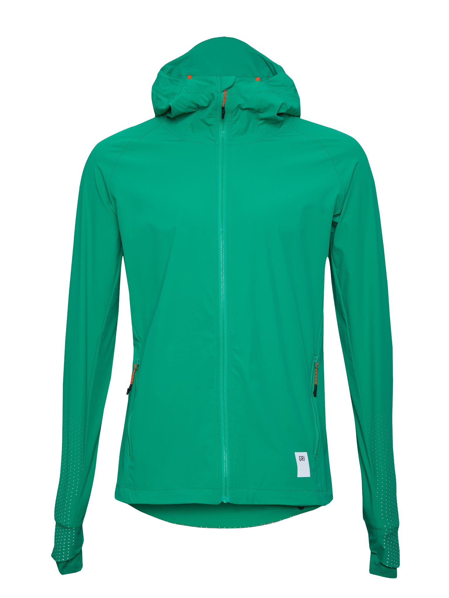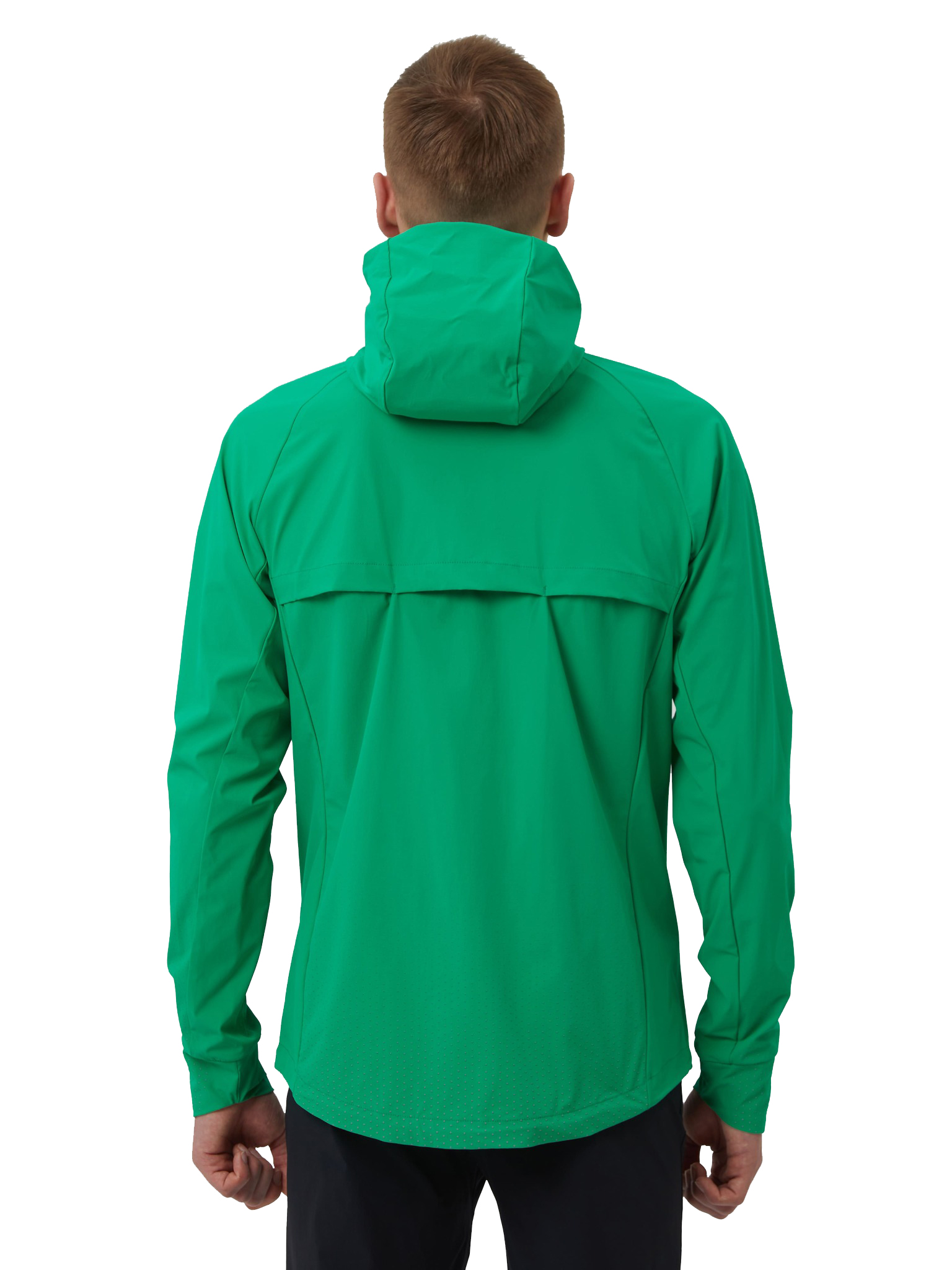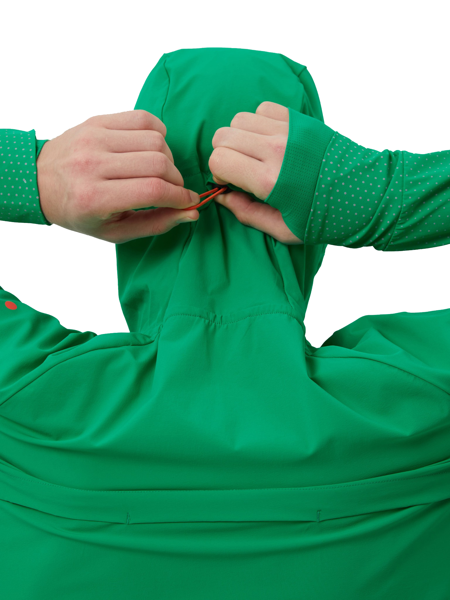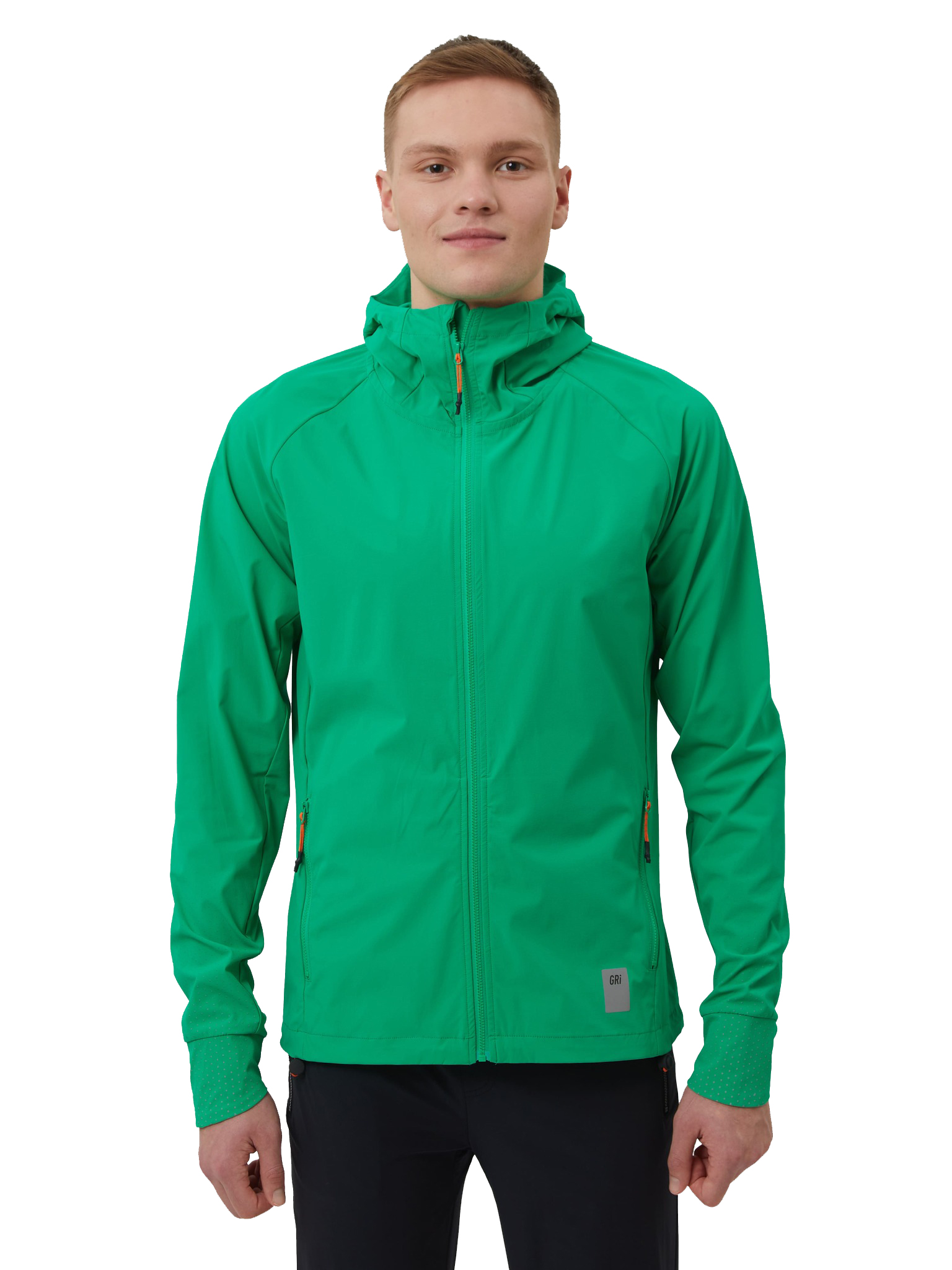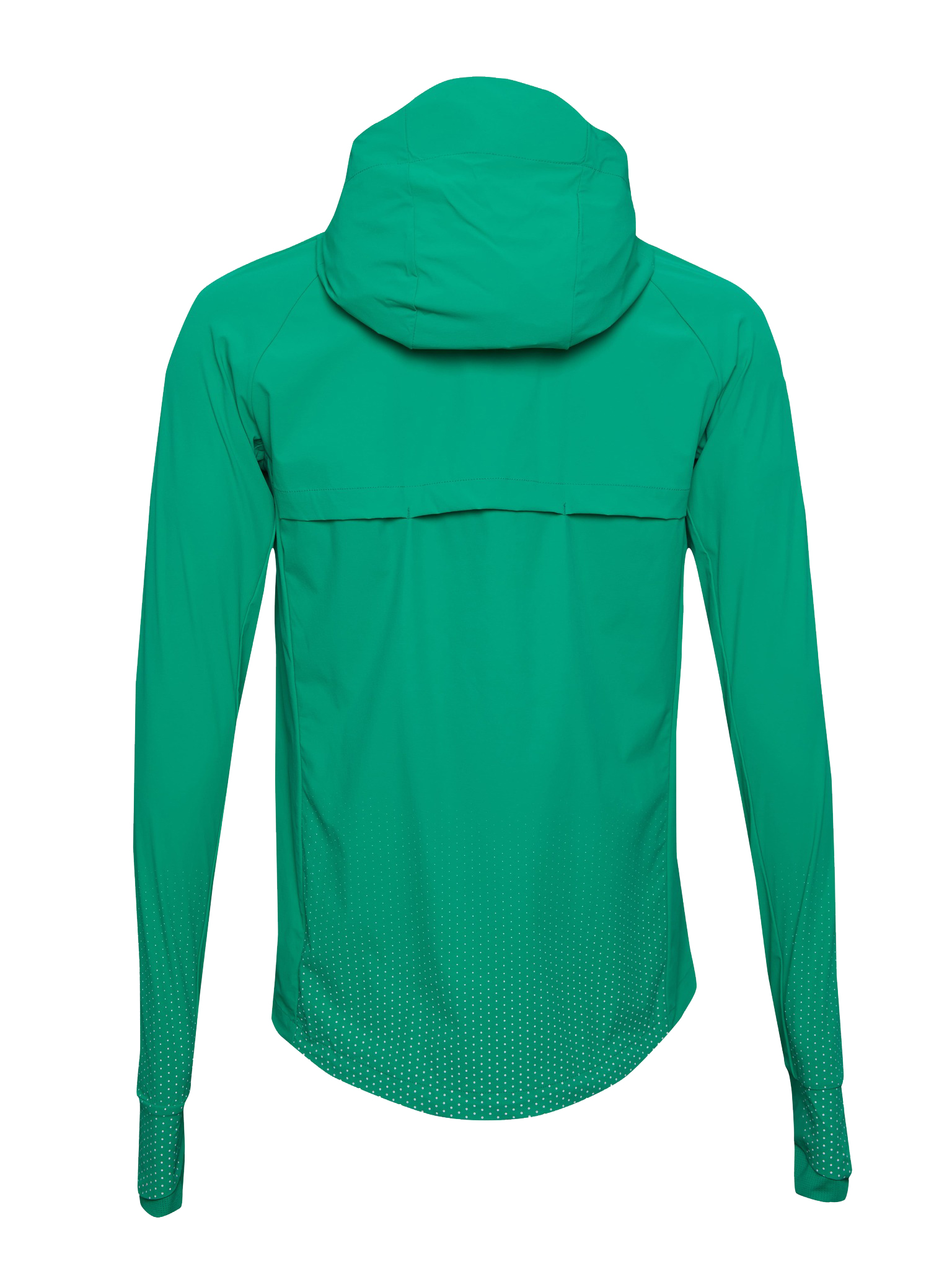 В зависимости от погоды под куртку можно надеть футболку или лонгслив. Благодаря водоотталкивающей пропитке и удобному капюшону куртка подойдёт для тренировок в дождь. Удлинённые манжеты с вырезами для больших пальцев защитят руки от холода.