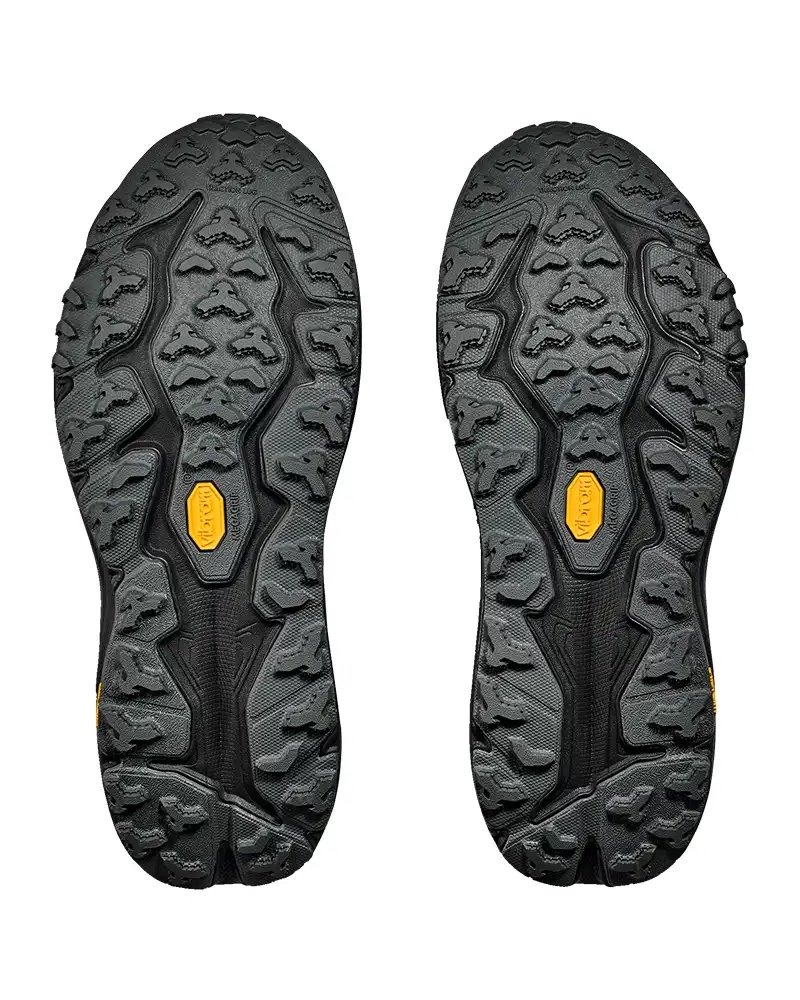 Еще более легкая, чем ее предшественница, эта модель обладает высоким уровнем амортизации благодаря межподошве из пены CMEVA и отличным сцеплением с поверхностью за счет микрозубцов и глубокого рисунка протектора подошвы, сделанной с применением технологий Vibram® Megagrip и Traction Lug.