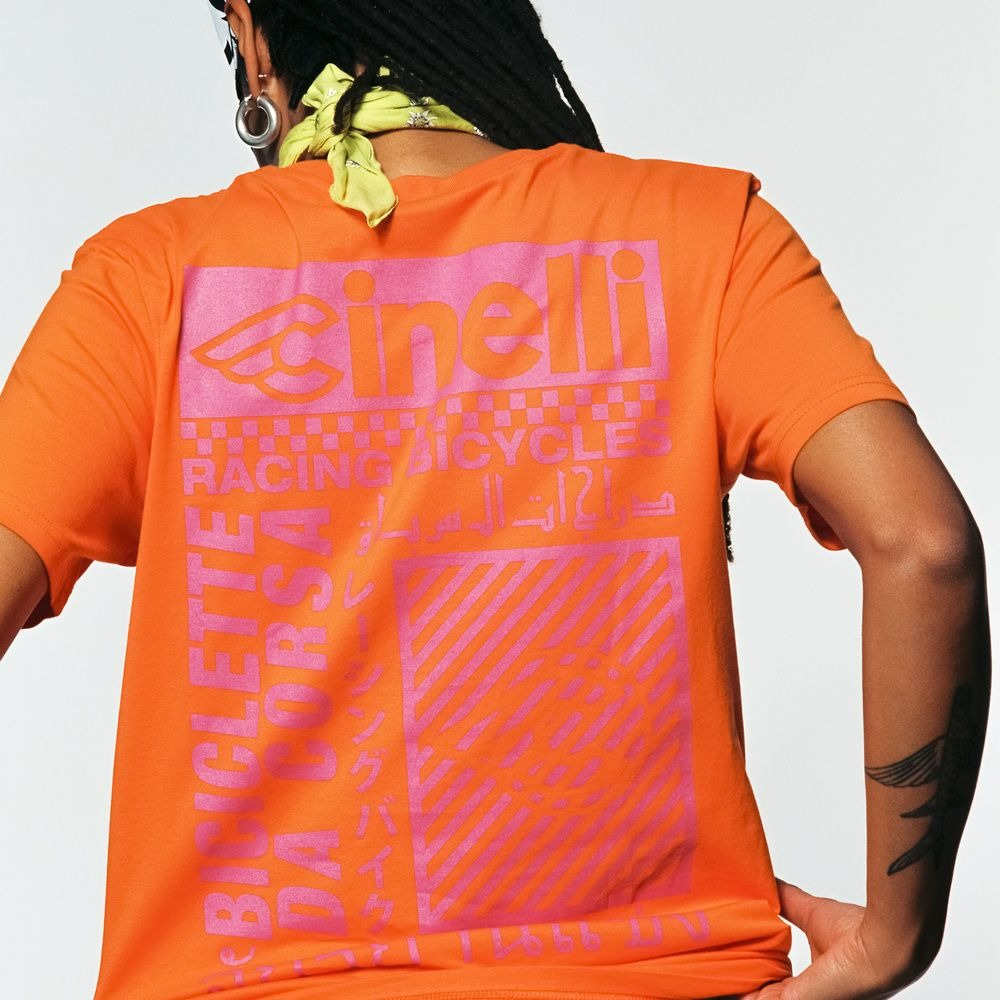 Футболка Cinelli T-Shirt Racing Bicycles / Оранжевый-Розовый