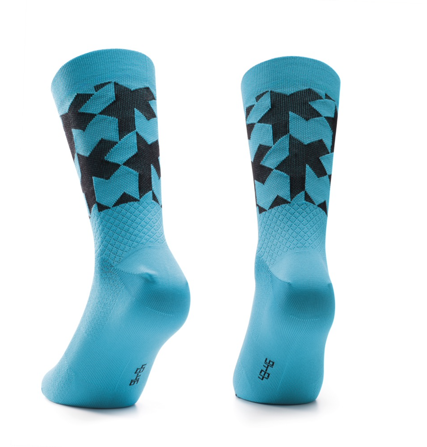 Летние носки ASSOS с увеличенной высотой манжеты 18 см, контрастной графикой в виде грифона и высокими показателями вентиляции.