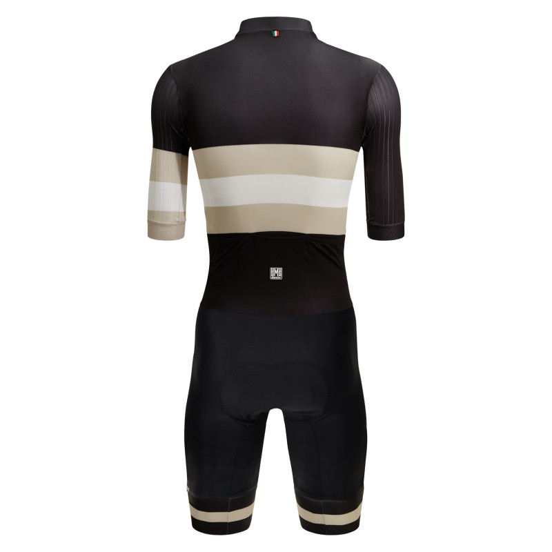 Свежее ощущение итальянской легкой ткани на теле с рукавами из аэродинамической, высокоскоростной ткани, эластичной конструкции с вертикальными полосами для максимального аэродинамического преимущества. Эластичная лента с внутренней фиксацией на манжетах, чтобы костюм всегда оставался в нужном положении. Нижняя часть выполнена из высокоэластичной, компактной итальянской ткани с технологией Power Compression. Он обеспечивает среднюю компрессию без ограничений.